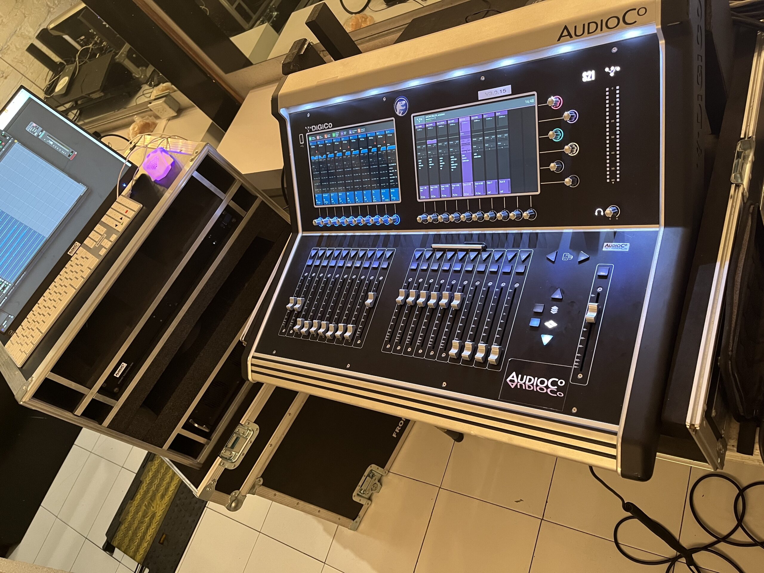 Nuestro sistema de grabación está diseñado para adaptarse a cualquier espacio sin comprometer calidad. Trabajamos con consolas digitales de alto nivel, como la DiGiCo Quantum 338, SD12, S21 y la Soundcraft Vi6, que ofrecen preamplificación precisa y una captura clara desde la fuente.